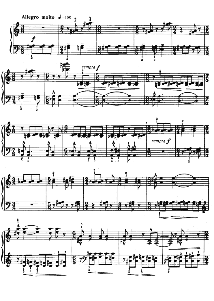 - l'armure (tonalité) - le type de mesure : 4/4, 6/8 etc.